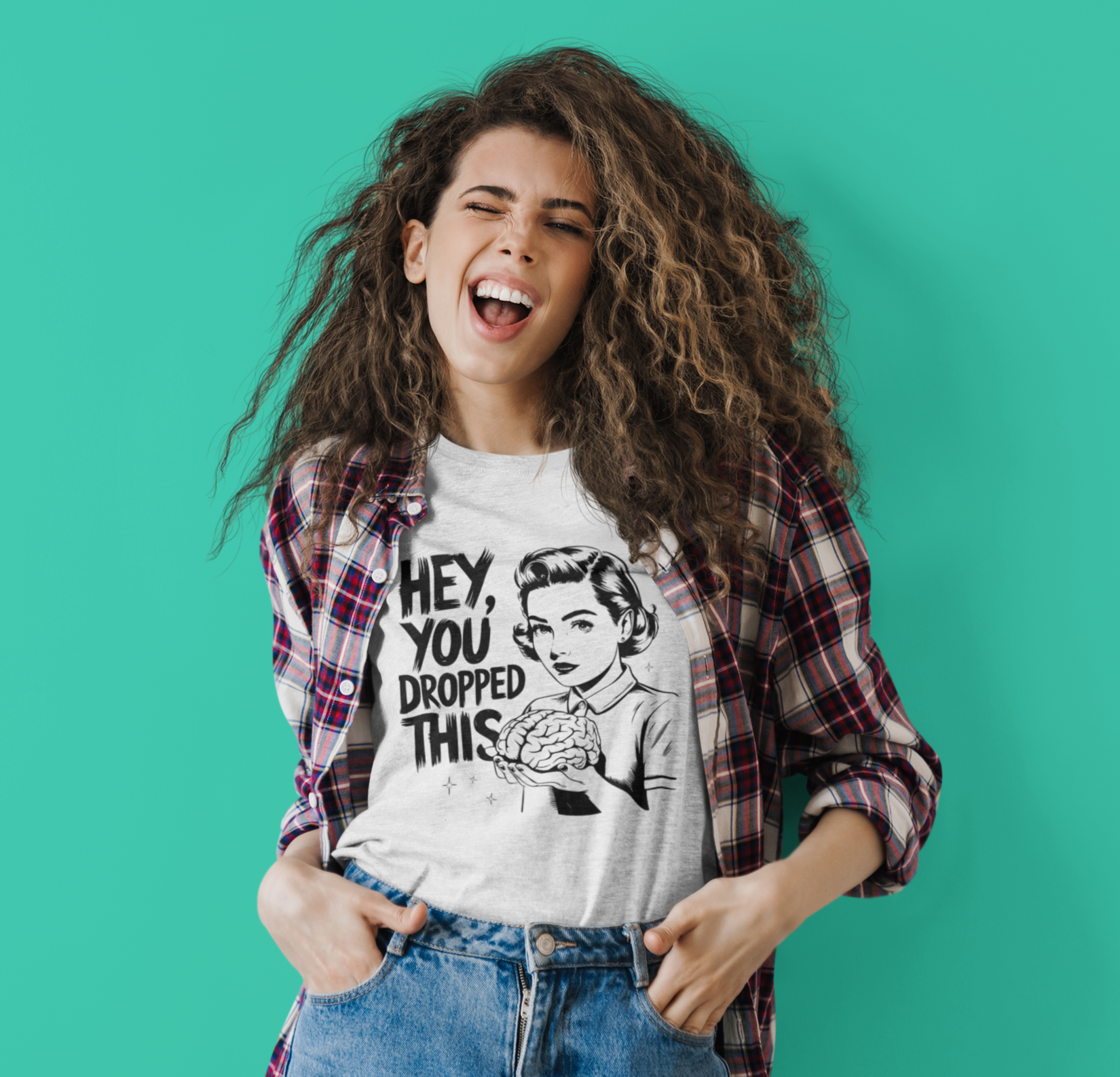 Σαρκαστικό, ανατρεπτικό και έξυπνο – αυτό το γυναικείο μπλουζάκι "Hey, You Dropped This" συνδυάζει vintage pop art αισθητική με φεμινιστική διάθεση. Η εικόνα μιας ρετρό γυναίκας που κρατά έναν εγκέφαλο στέλνει ένα ξεκάθαρο μήνυμα σε όποιον το χρειάζεται! Τέλειο για καθημερινές εμφανίσεις με χαρακτήρα.