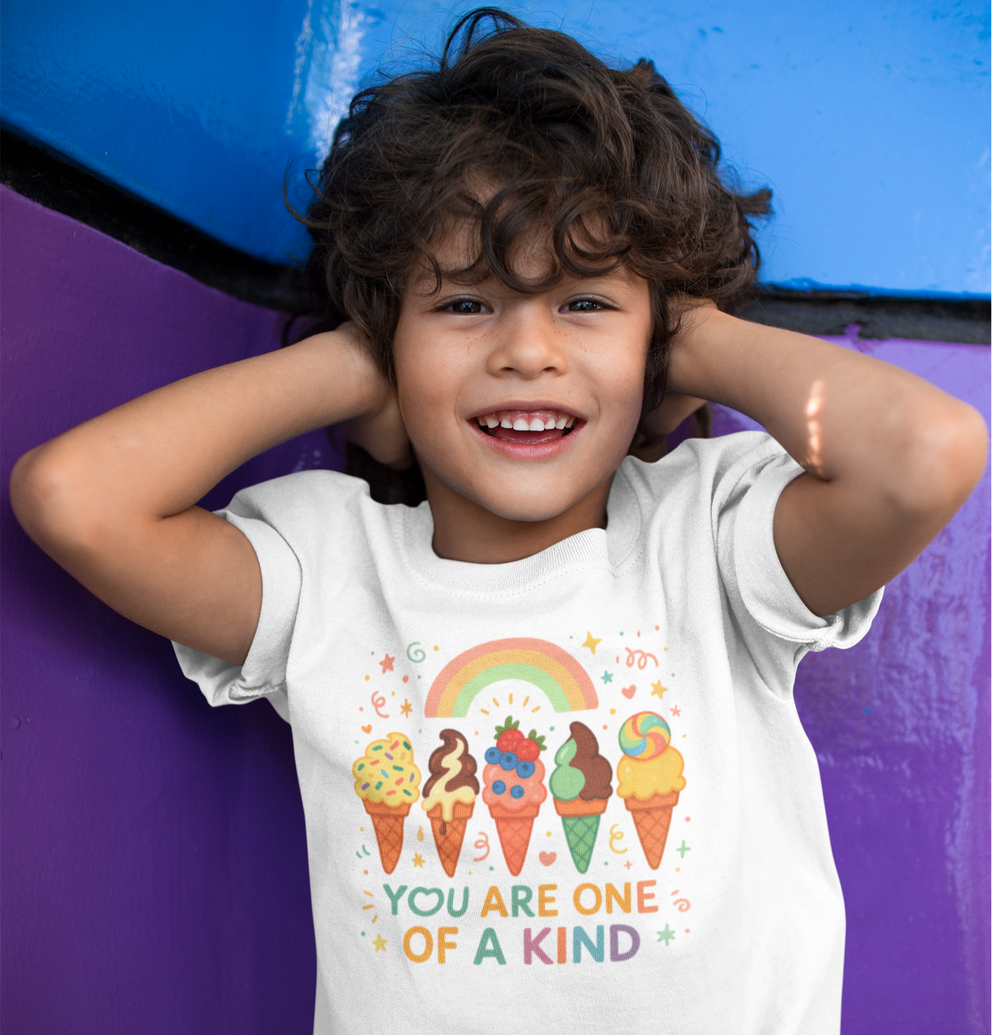In a Melon Kids T-shirt