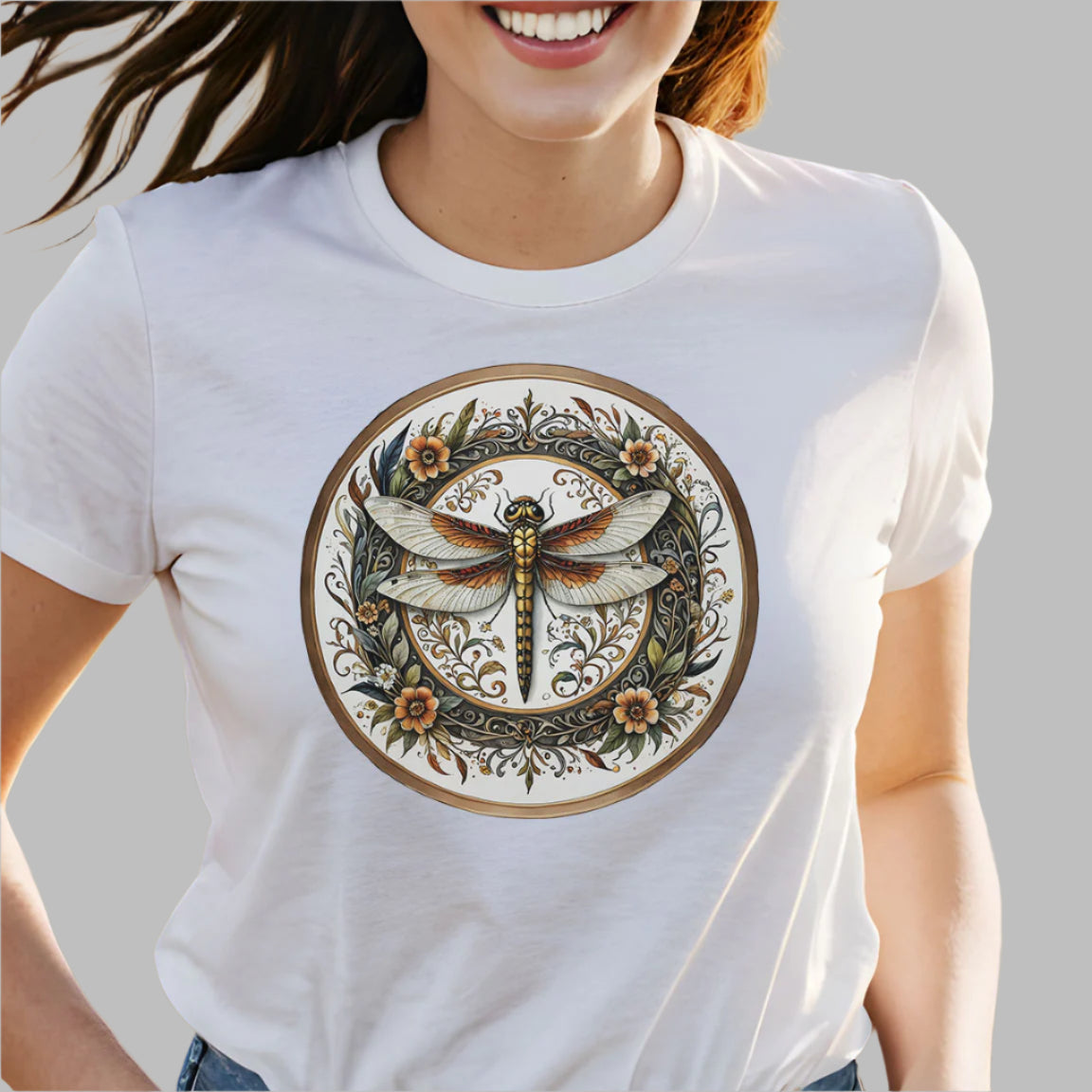 Our Boho Dragonfly Floral T-Shirt is the perfect way to add a touch of whimsy to your wardrobe! With a beautiful dragonfly design and colorful floral pattern, you'll be all set to take on the day in style (and with a little bit of magic).
