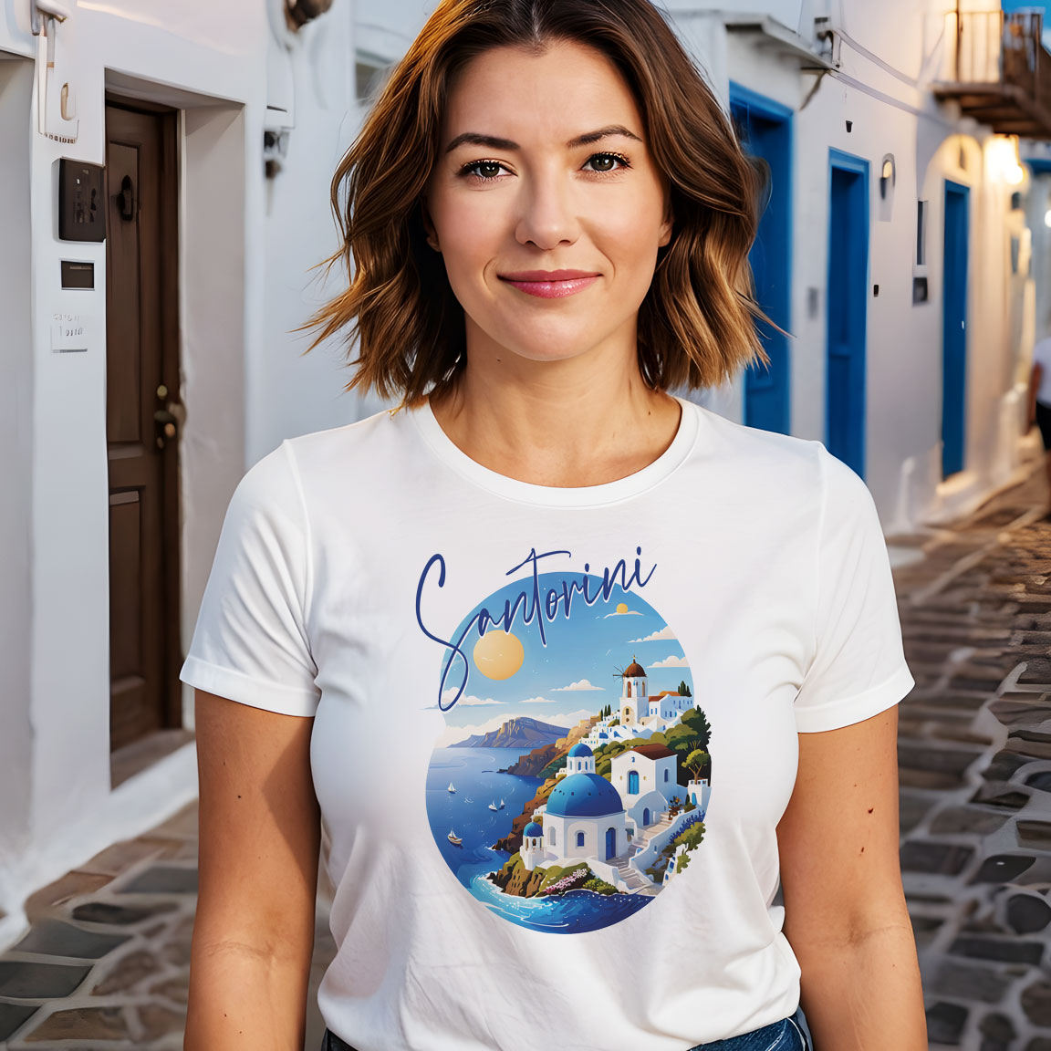 Comfortable, stylish and durable, this cotton t-shirt is a must-have for anyone who loves to travel and wants to bring a piece of Santorini's volcanic beauty with them. Show off your love for Greece and its picturesque island with this tee that is perfect for any casual occasion.